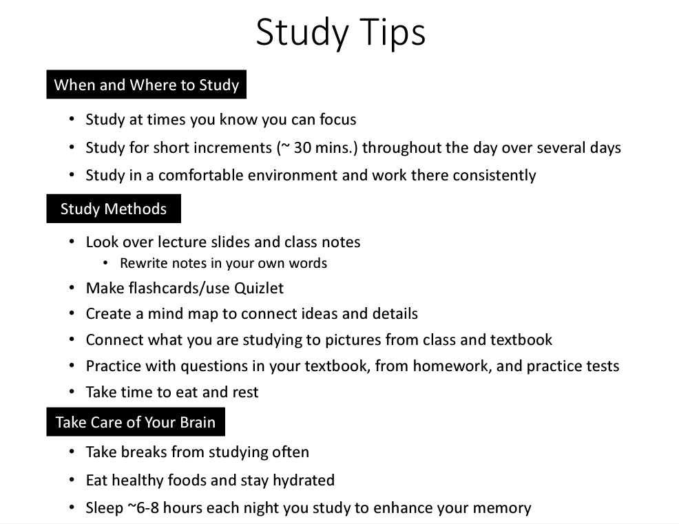 It’s no cliché! According to Cornell Health, taking purposeful breaks anywhere from five to sixty minutes can be just what your brain needs to revitalize and increase productivity. Junior Alyssa Parzych (Class of 2025) finds taking 15 minute breaks are the most effective for her. She also advises, “drink lots of water, and [that] eating nuts like trail mix helps because they’re supposed to be a brain food.” Parzych sets alarms in order to remind herself when her breaks start and when it’s time to start studying again. Did you know taking breaks can also help with memory retention and performance? Our beautiful brains still work on problems even when we step away from our homework.