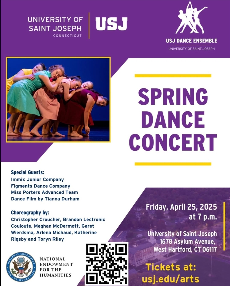 The Spring Dance Show, happening Friday, April 25 at 7:00 p.m. in Hoffman Auditorium, the USJ Dance Ensemble will be performing their pieces, alongside outside companies, giving the public a diverse dynamic of art. Tickets are available online through the Hoffman Auditorium. USJ students can attend for free with their student ID. For others interested, ticket pricing is posted on the USJ website. Follow the @usjdanceensemble on Instagram for updates!